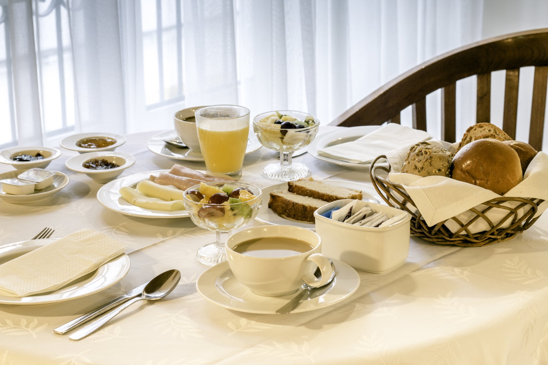 Rooms with double or twin beds, balcony windows, with bath or shower with good pressure.